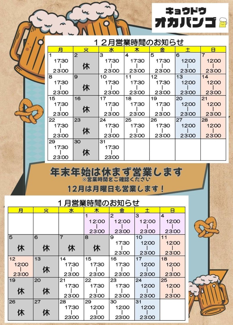 | 営業時間 | 最新の営業時間・定休日は、 こちらのページ でご確認ください。 |